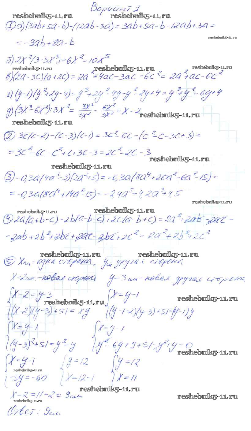 Готовая домашняя работа с ответами по Алгебре за 7 класс Звавич, Кузнецова, Суворова Дидактические материалы Просвещение 2012 ФГОС - Вариант 1 k-4a