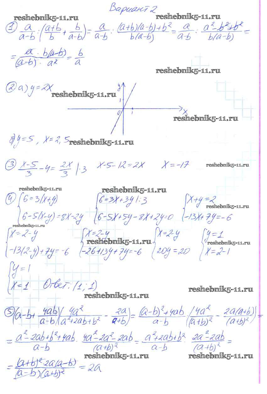 Готовая домашняя работа с ответами по Алгебре за 7 класс Звавич, Кузнецова, Суворова Дидактические материалы Просвещение 2012 ФГОС - Вариант 2 ik-3a