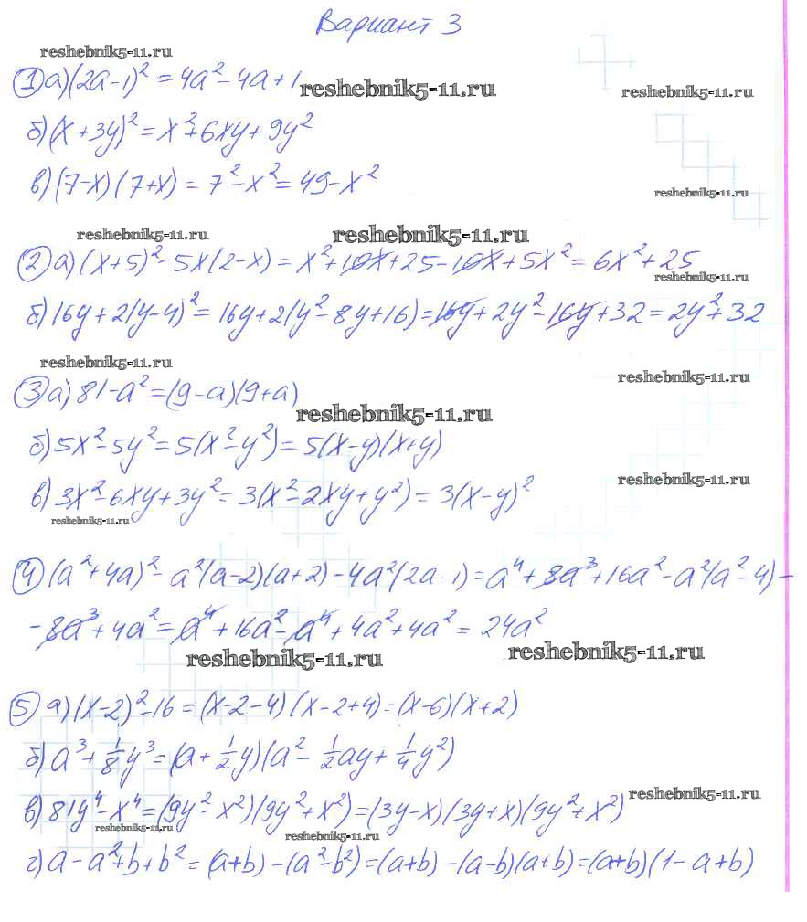 Готовая домашняя работа с ответами по Алгебре за 7 класс Звавич, Кузнецова, Суворова Дидактические материалы Просвещение 2012 ФГОС - Вариант 3 k-6a