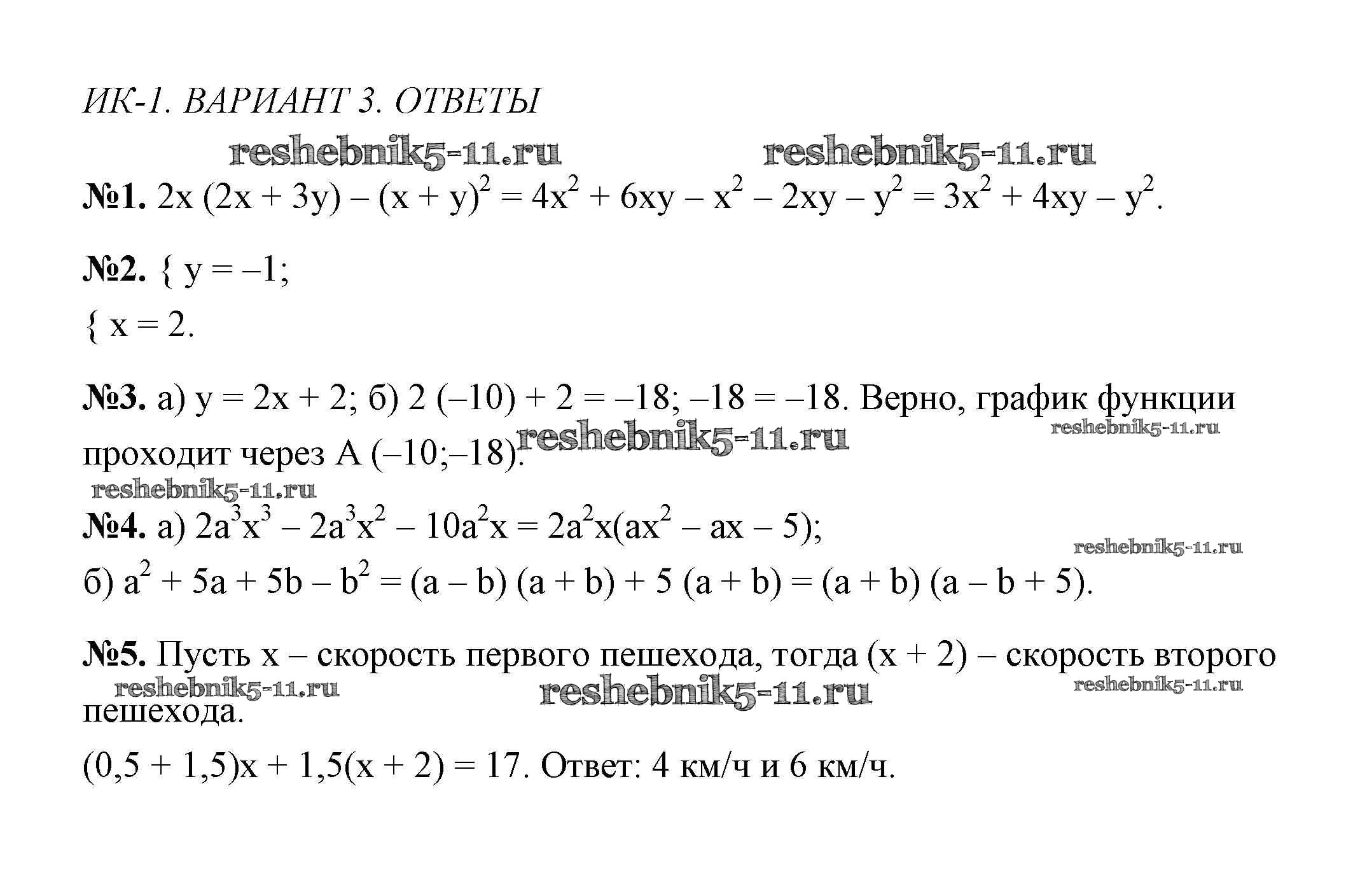 Готовая домашняя работа с ответами по Алгебре за 7 класс Звавич, Кузнецова, Суворова Дидактические материалы Просвещение 2012 ФГОС - Вариант 3 ik-1