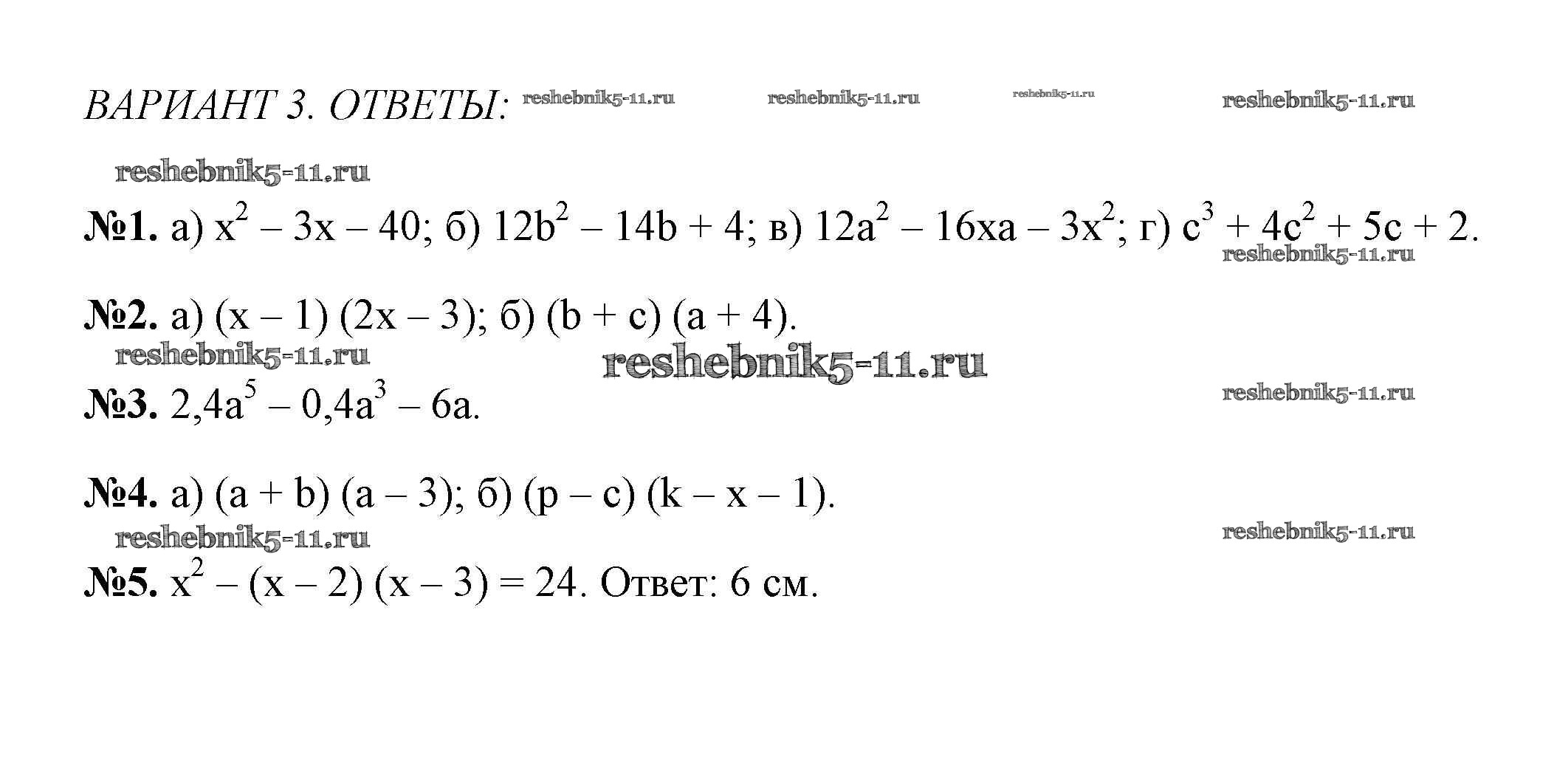 Готовая домашняя работа с ответами по Алгебре за 7 класс Звавич, Кузнецова, Суворова Дидактические материалы Просвещение 2012 ФГОС - Вариант 3 k-3a