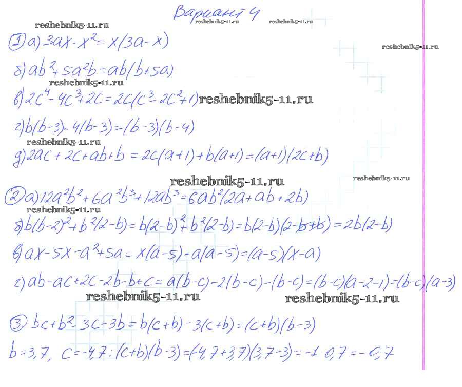 Готовая домашняя работа с ответами по Алгебре за 7 класс Звавич, Кузнецова, Суворова Дидактические материалы Просвещение 2012 ФГОС - Вариант 4 k-5a