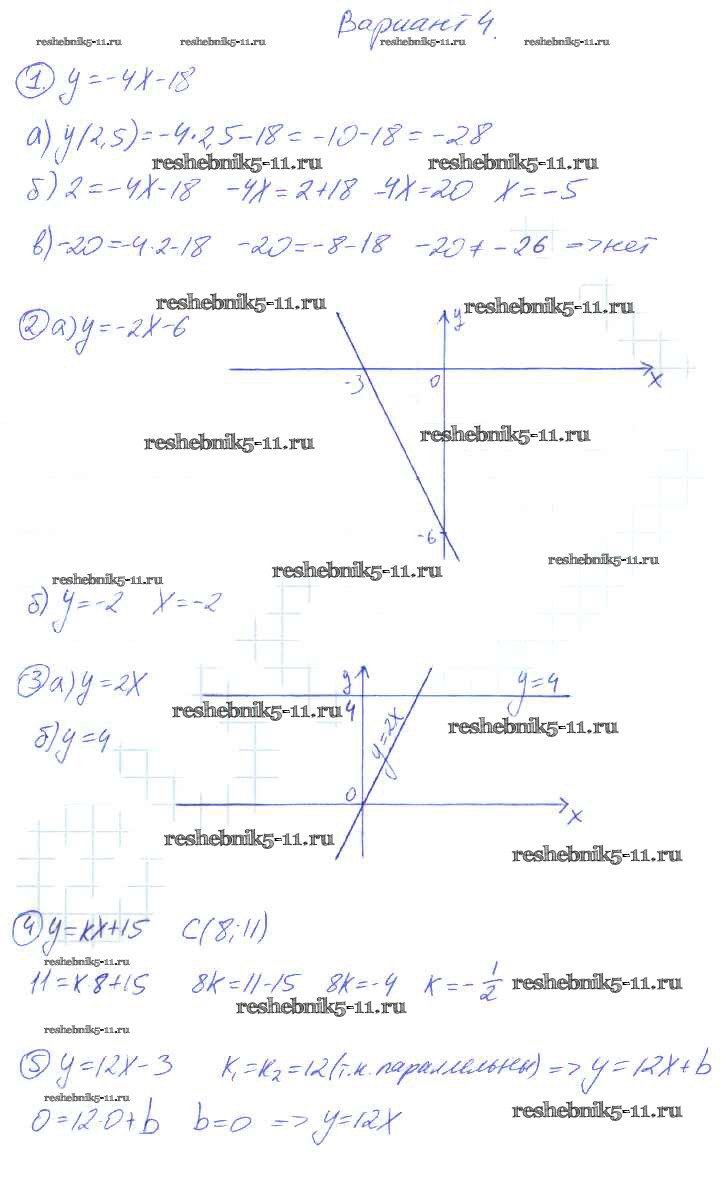 Готовая домашняя работа с ответами по Алгебре за 7 класс Звавич, Кузнецова, Суворова Дидактические материалы Просвещение 2012 ФГОС - Вариант 4 k-9a