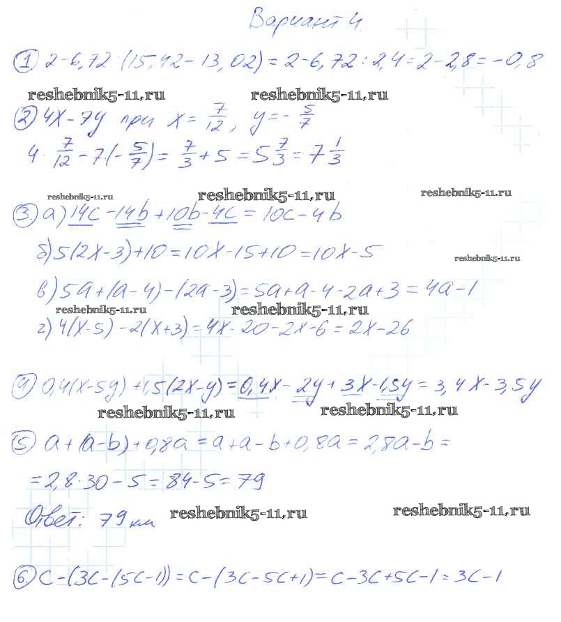Готовая домашняя работа с ответами по Алгебре за 7 класс Звавич, Кузнецова, Суворова Дидактические материалы Просвещение 2012 ФГОС - Вариант 4 k-1a
