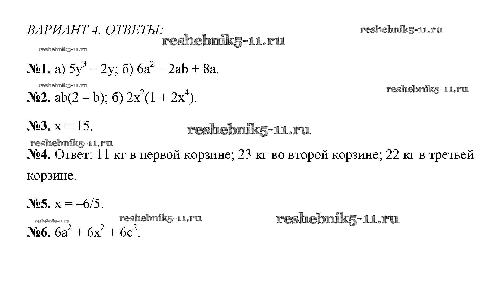Готовая домашняя работа с ответами по Алгебре за 7 класс Звавич, Кузнецова, Суворова Дидактические материалы Просвещение 2012 ФГОС - Вариант 4 k-3