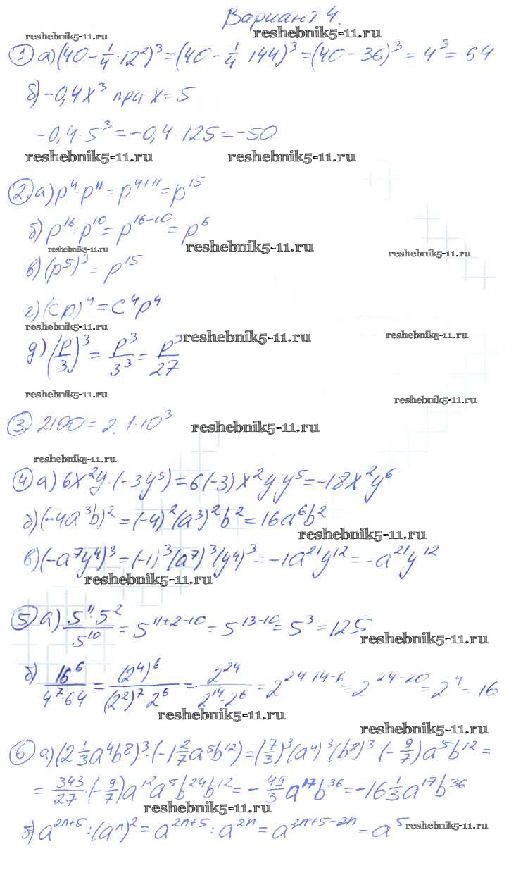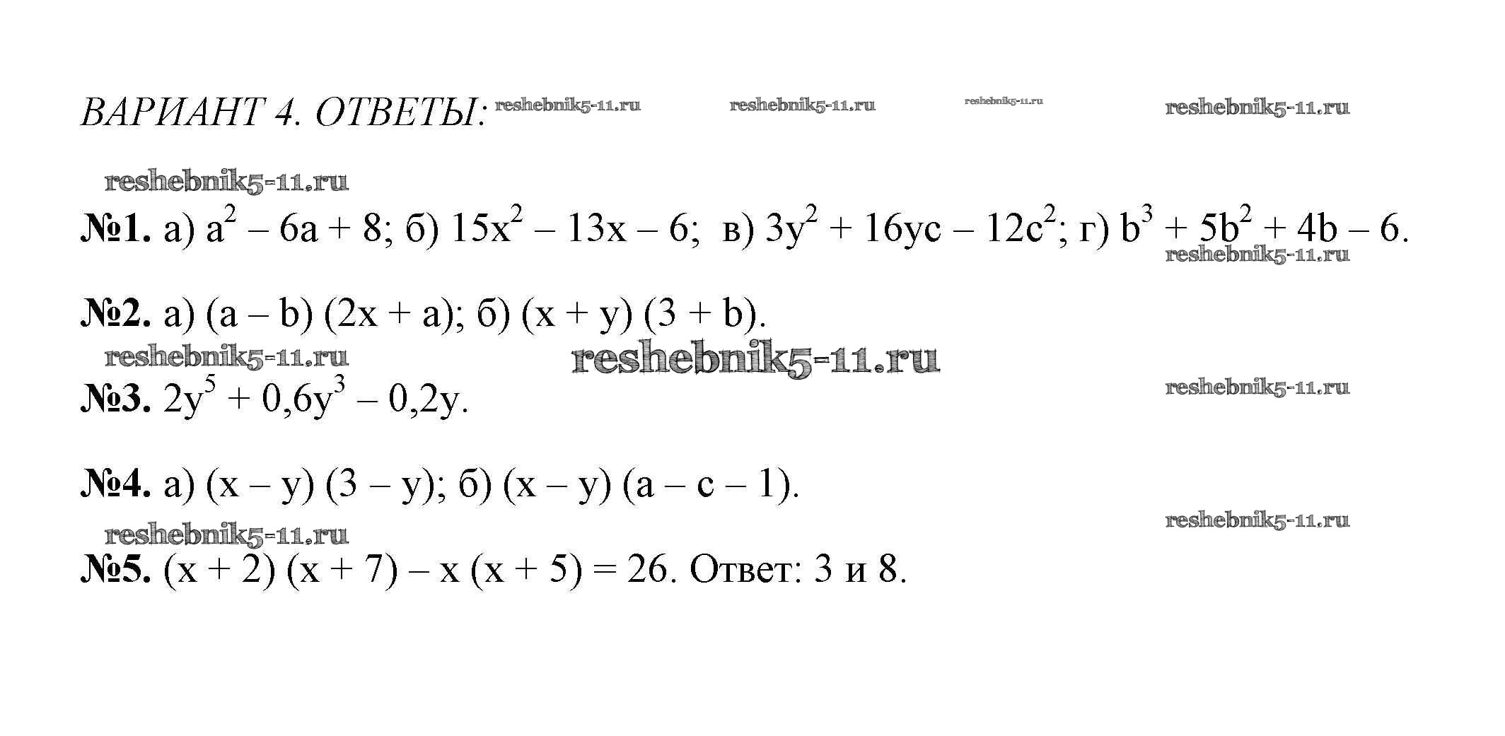 Готовая домашняя работа с ответами по Алгебре за 7 класс Звавич, Кузнецова, Суворова Дидактические материалы Просвещение 2012 ФГОС - Вариант 4 k-3a