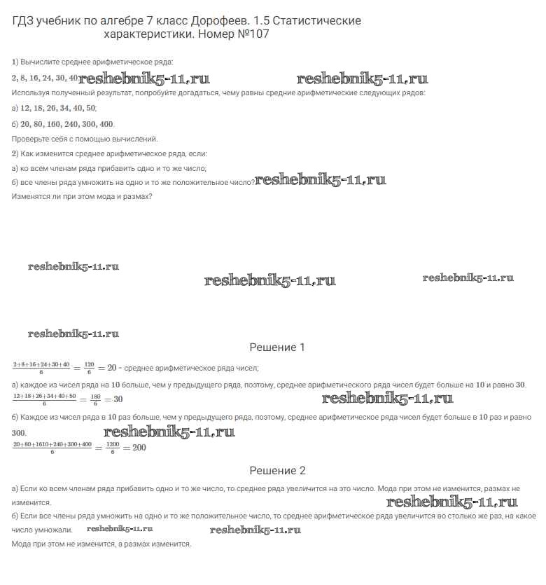 Готовая домашняя работа с ответами по Алгебре за 7 класс Дорофеев, Суворова, Бунимович Учебник Академический школьный учебник Просвещение 2020 ФГОС - Упражнения 107