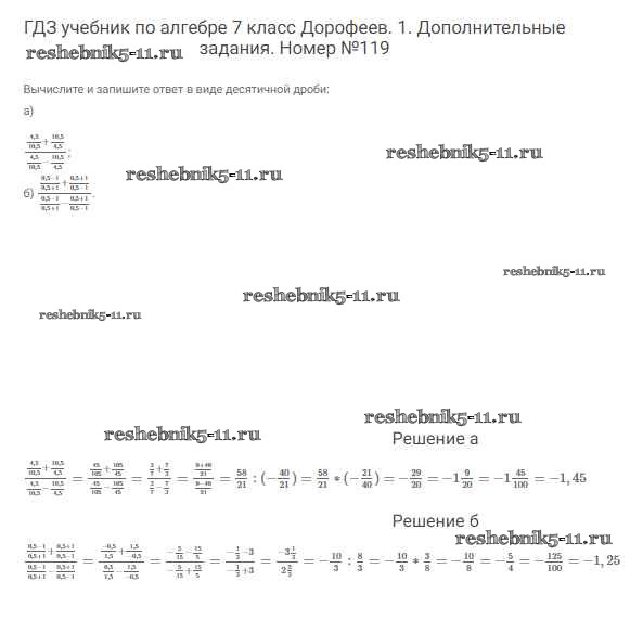 Готовая домашняя работа с ответами по Алгебре за 7 класс Дорофеев, Суворова, Бунимович Учебник Академический школьный учебник Просвещение 2020 ФГОС - Упражнения 119
