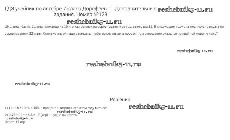 Готовая домашняя работа с ответами по Алгебре за 7 класс Дорофеев, Суворова, Бунимович Учебник Академический школьный учебник Просвещение 2020 ФГОС - Упражнения 129