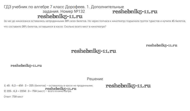 Готовая домашняя работа с ответами по Алгебре за 7 класс Дорофеев, Суворова, Бунимович Учебник Академический школьный учебник Просвещение 2020 ФГОС - Упражнения 132