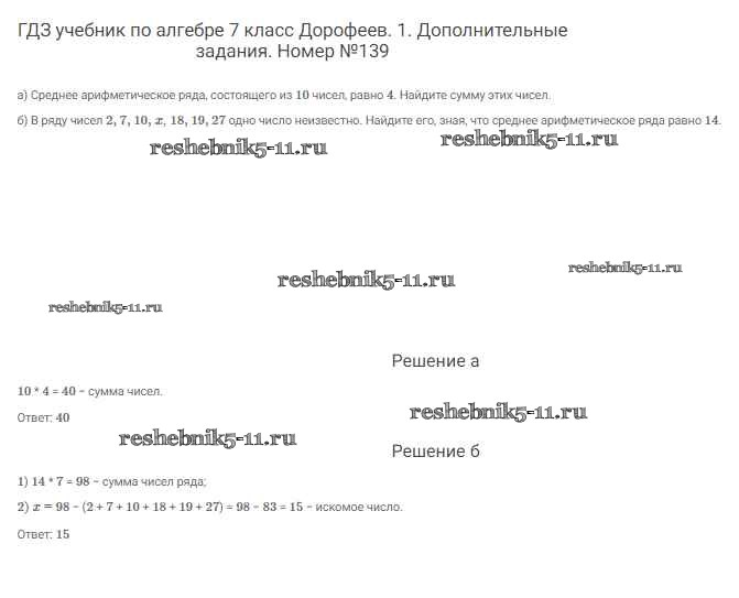 Готовая домашняя работа с ответами по Алгебре за 7 класс Дорофеев, Суворова, Бунимович Учебник Академический школьный учебник Просвещение 2020 ФГОС - Упражнения 139