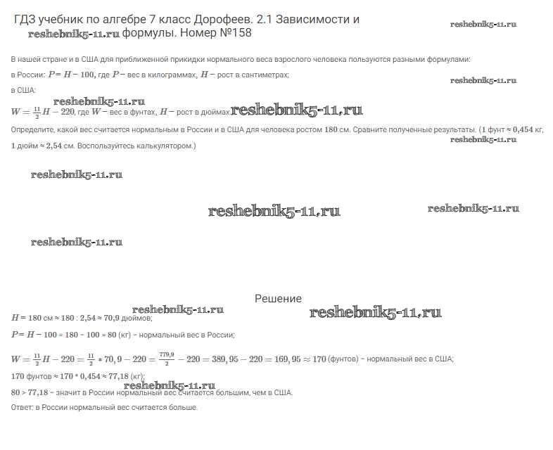 Готовая домашняя работа с ответами по Алгебре за 7 класс Дорофеев, Суворова, Бунимович Учебник Академический школьный учебник Просвещение 2020 ФГОС - Упражнения 158