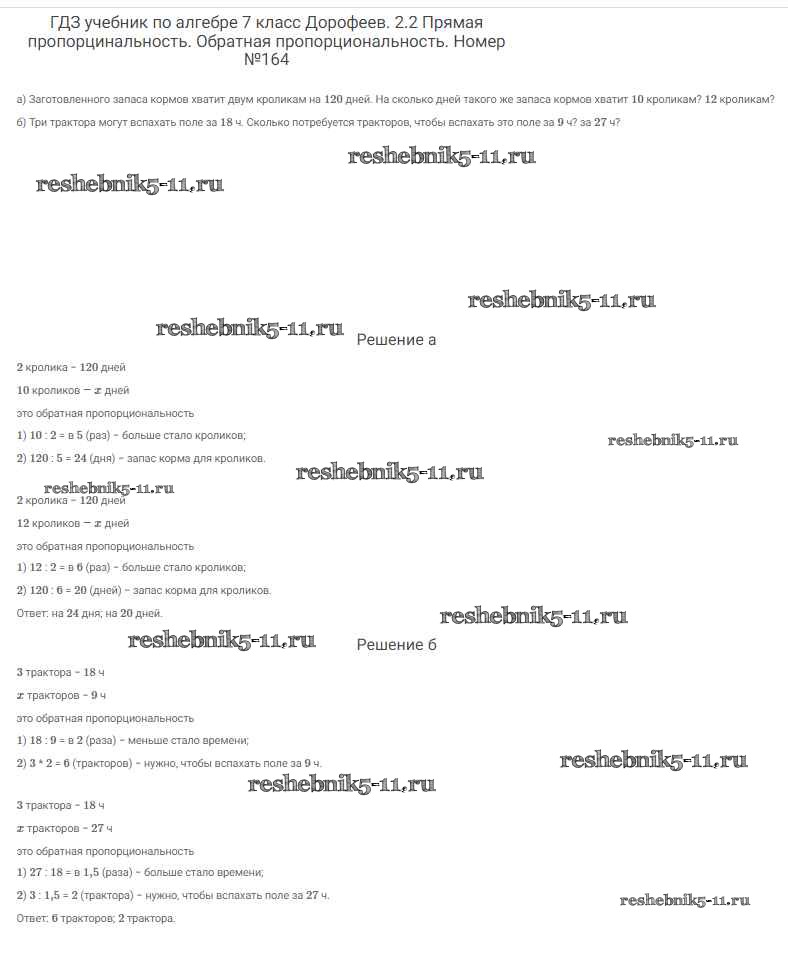 Готовая домашняя работа с ответами по Алгебре за 7 класс Дорофеев, Суворова, Бунимович Учебник Академический школьный учебник Просвещение 2020 ФГОС - Упражнения 164