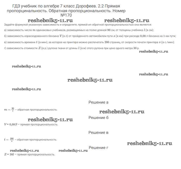 Готовая домашняя работа с ответами по Алгебре за 7 класс Дорофеев, Суворова, Бунимович Учебник Академический школьный учебник Просвещение 2020 ФГОС - Упражнения 170