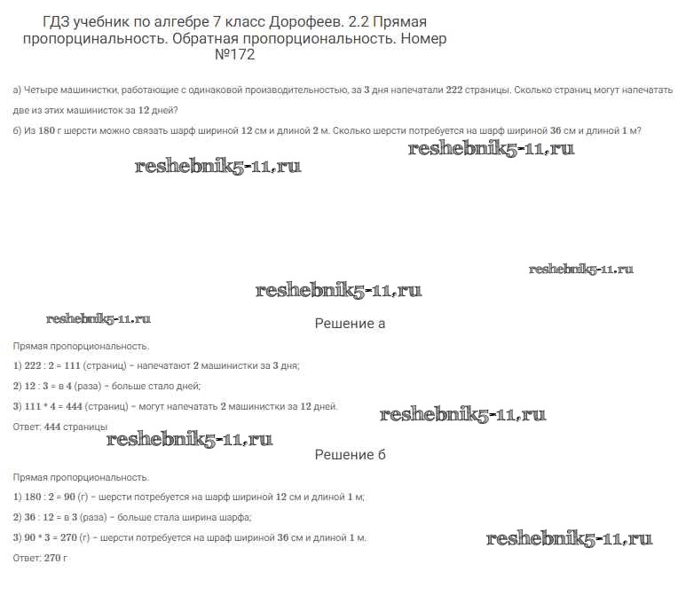 Готовая домашняя работа с ответами по Алгебре за 7 класс Дорофеев, Суворова, Бунимович Учебник Академический школьный учебник Просвещение 2020 ФГОС - Упражнения 172