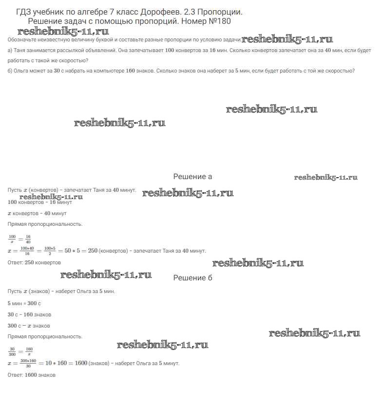 Готовая домашняя работа с ответами по Алгебре за 7 класс Дорофеев, Суворова, Бунимович Учебник Академический школьный учебник Просвещение 2020 ФГОС - Упражнения 180