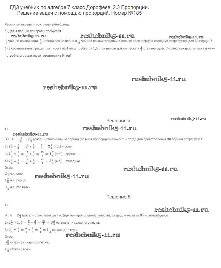 Готовая домашняя работа с ответами по Алгебре за 7 класс Дорофеев, Суворова, Бунимович Учебник Академический школьный учебник Просвещение 2020 ФГОС - Упражнения 185