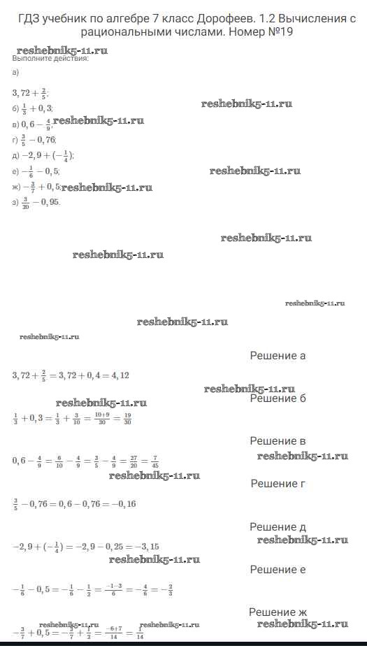 Готовая домашняя работа с ответами по Алгебре за 7 класс Дорофеев, Суворова, Бунимович Учебник Академический школьный учебник Просвещение 2020 ФГОС - Упражнения 19