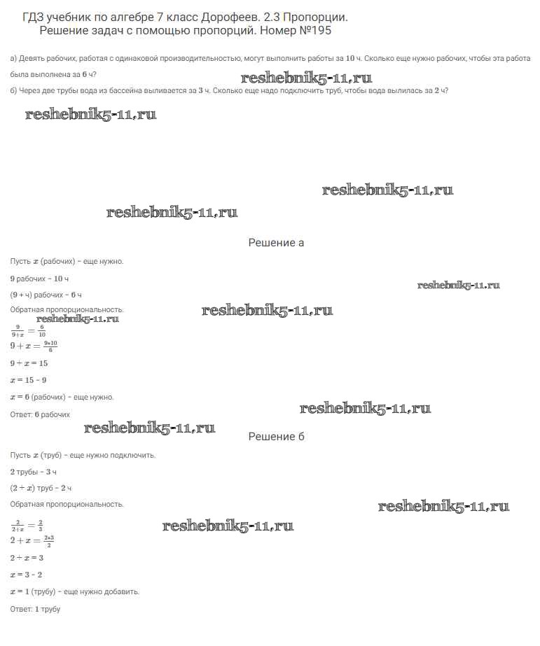 Готовая домашняя работа с ответами по Алгебре за 7 класс Дорофеев, Суворова, Бунимович Учебник Академический школьный учебник Просвещение 2020 ФГОС - Упражнения 195