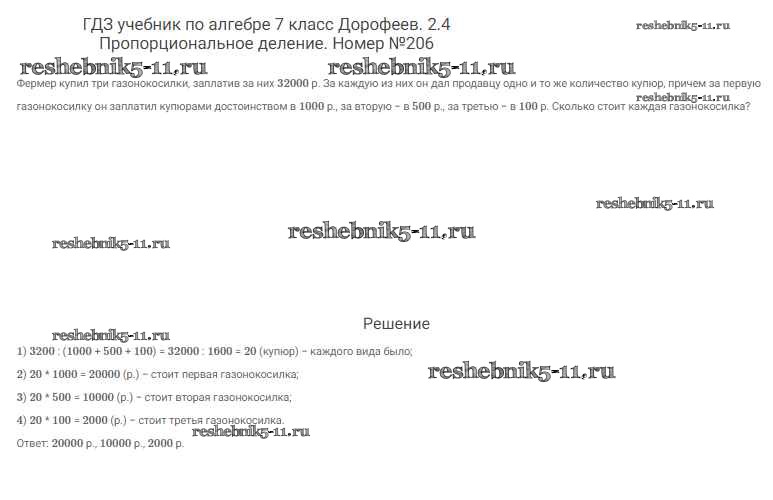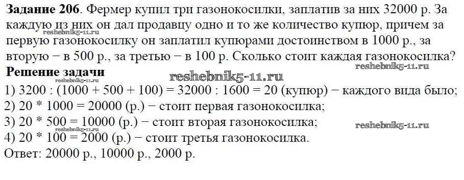 Готовая домашняя работа с ответами по Алгебре за 7 класс Дорофеев, Суворова, Бунимович Учебник Академический школьный учебник Просвещение 2020 ФГОС - Упражнения 206