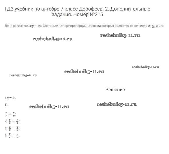 Готовая домашняя работа с ответами по Алгебре за 7 класс Дорофеев, Суворова, Бунимович Учебник Академический школьный учебник Просвещение 2020 ФГОС - Упражнения 215