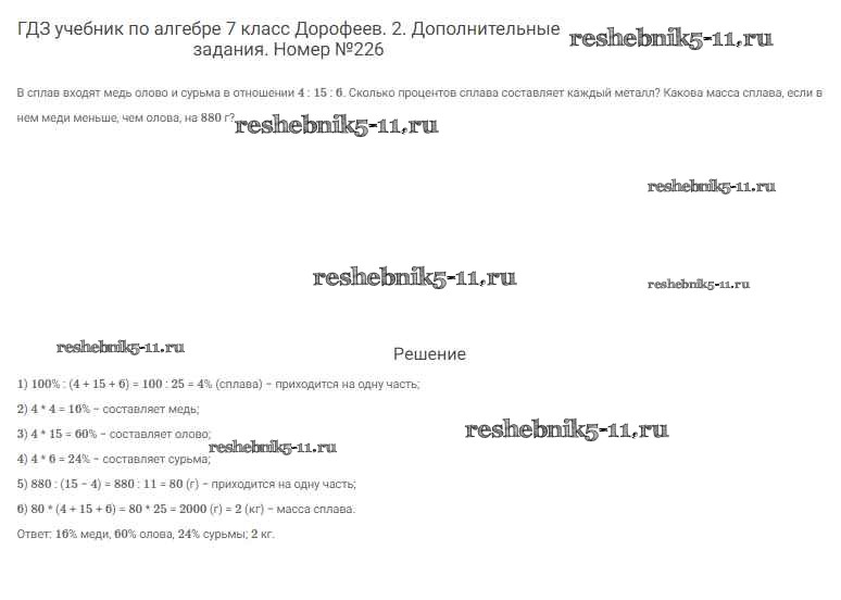 Готовая домашняя работа с ответами по Алгебре за 7 класс Дорофеев, Суворова, Бунимович Учебник Академический школьный учебник Просвещение 2020 ФГОС - Упражнения 226