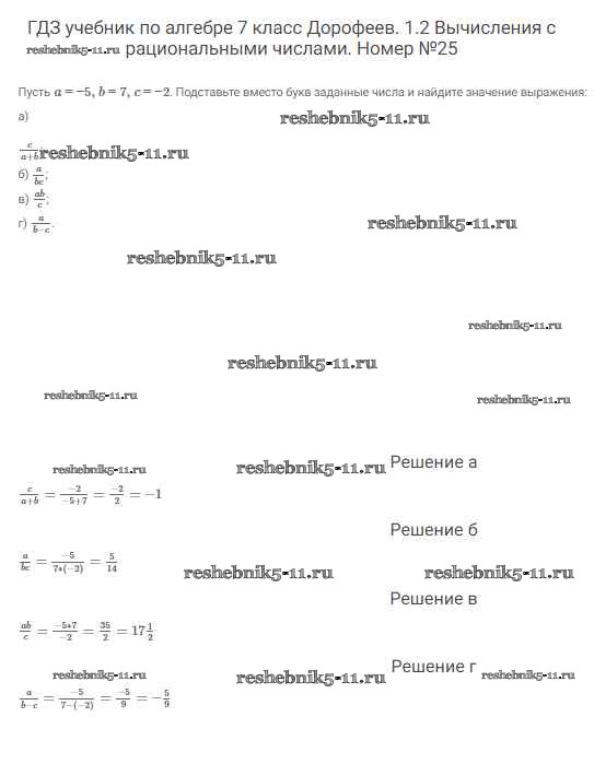 Готовая домашняя работа с ответами по Алгебре за 7 класс Дорофеев, Суворова, Бунимович Учебник Академический школьный учебник Просвещение 2020 ФГОС - Упражнения 25