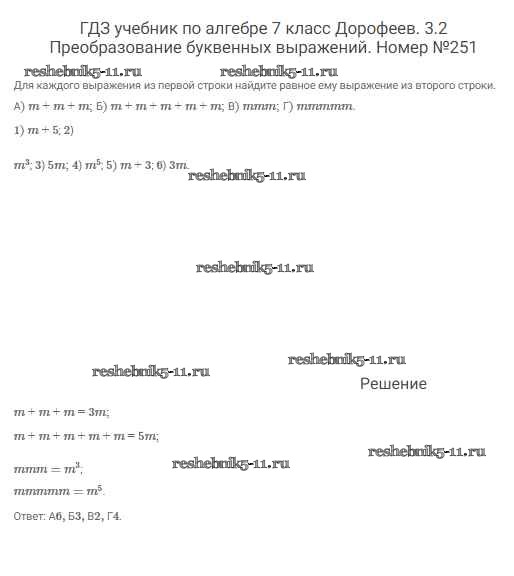Готовая домашняя работа с ответами по Алгебре за 7 класс Дорофеев, Суворова, Бунимович Учебник Академический школьный учебник Просвещение 2020 ФГОС - Упражнения 251