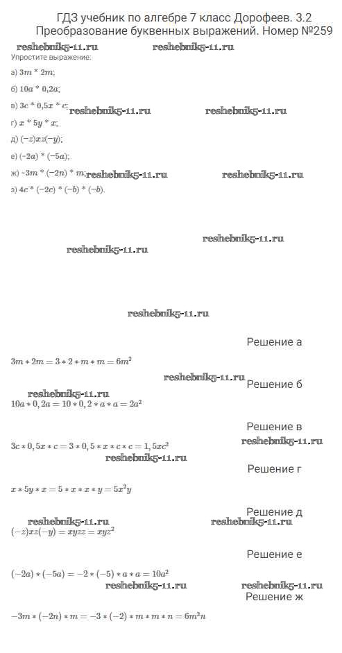 Готовая домашняя работа с ответами по Алгебре за 7 класс Дорофеев, Суворова, Бунимович Учебник Академический школьный учебник Просвещение 2020 ФГОС - Упражнения 259