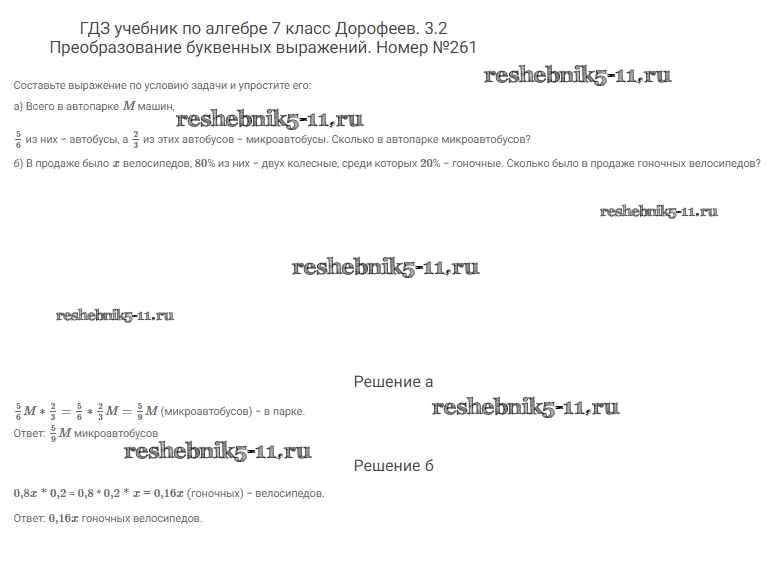 Готовая домашняя работа с ответами по Алгебре за 7 класс Дорофеев, Суворова, Бунимович Учебник Академический школьный учебник Просвещение 2020 ФГОС - Упражнения 261