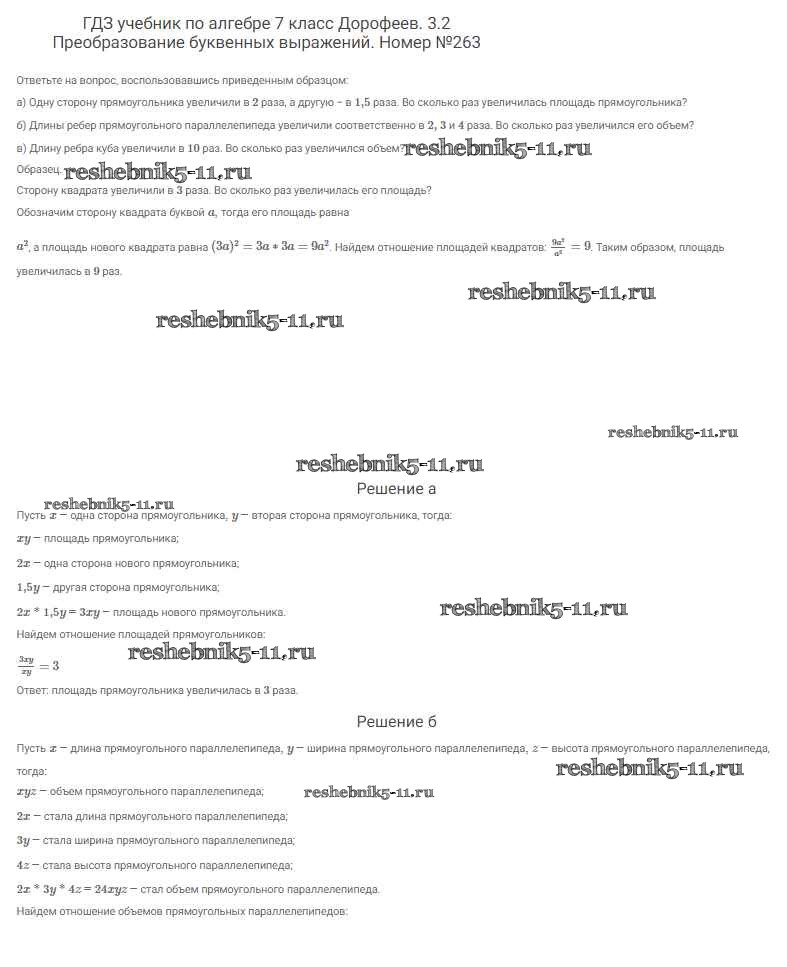 Готовая домашняя работа с ответами по Алгебре за 7 класс Дорофеев, Суворова, Бунимович Учебник Академический школьный учебник Просвещение 2020 ФГОС - Упражнения 263