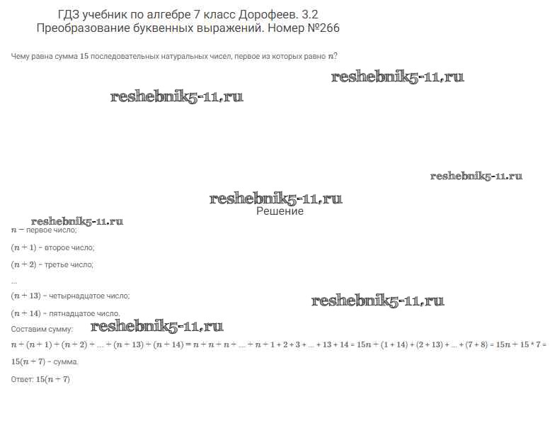 Готовая домашняя работа с ответами по Алгебре за 7 класс Дорофеев, Суворова, Бунимович Учебник Академический школьный учебник Просвещение 2020 ФГОС - Упражнения 266