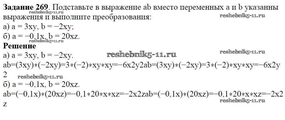 Готовая домашняя работа с ответами по Алгебре за 7 класс Дорофеев, Суворова, Бунимович Учебник Академический школьный учебник Просвещение 2020 ФГОС - Упражнения 269