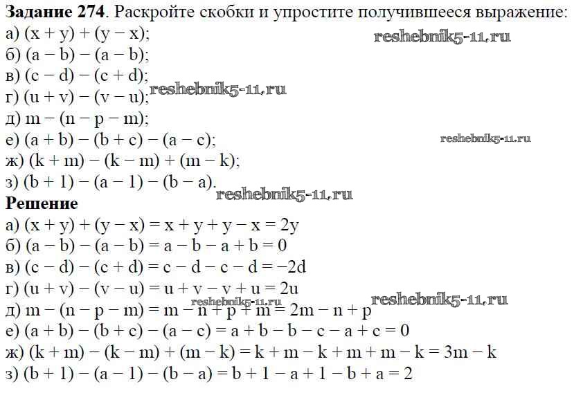 Готовая домашняя работа с ответами по Алгебре за 7 класс Дорофеев, Суворова, Бунимович Учебник Академический школьный учебник Просвещение 2020 ФГОС - Упражнения 274