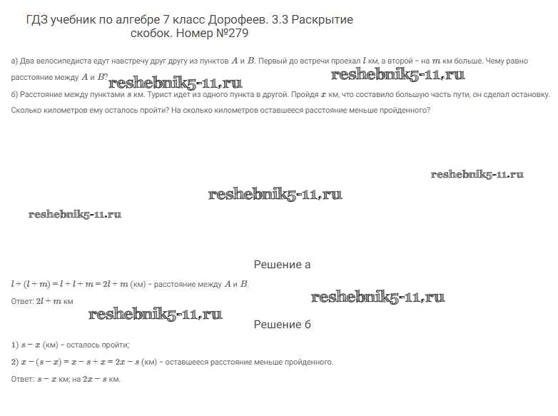 Готовая домашняя работа с ответами по Алгебре за 7 класс Дорофеев, Суворова, Бунимович Учебник Академический школьный учебник Просвещение 2020 ФГОС - Упражнения 279