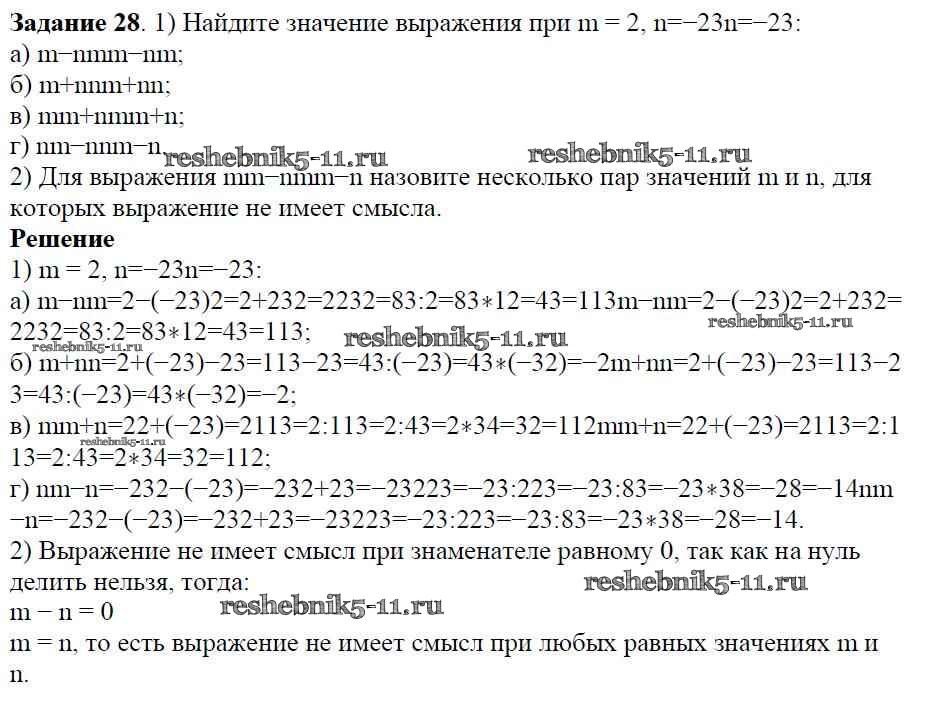 Готовая домашняя работа с ответами по Алгебре за 7 класс Дорофеев, Суворова, Бунимович Учебник Академический школьный учебник Просвещение 2020 ФГОС - Упражнения 28