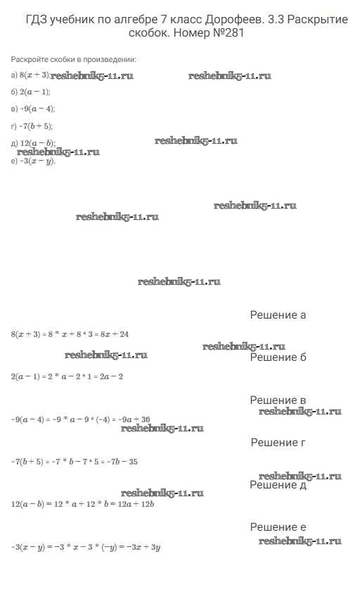 Готовая домашняя работа с ответами по Алгебре за 7 класс Дорофеев, Суворова, Бунимович Учебник Академический школьный учебник Просвещение 2020 ФГОС - Упражнения 281