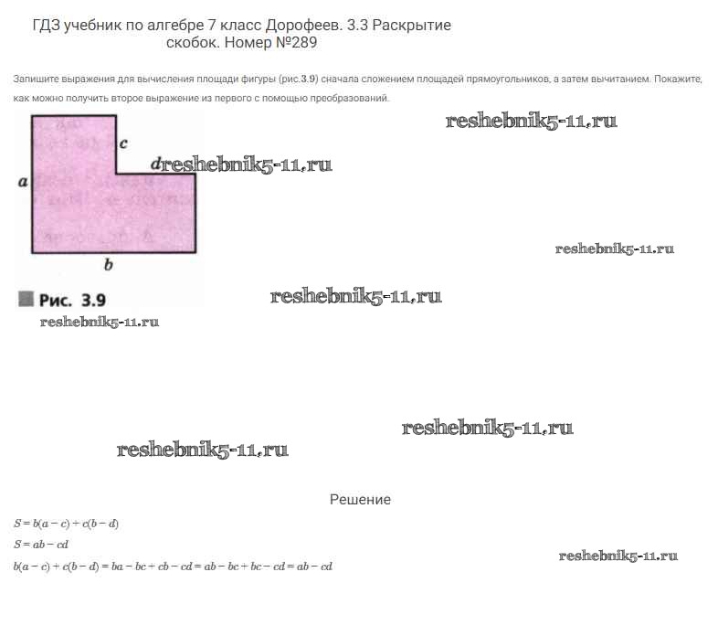 Готовая домашняя работа с ответами по Алгебре за 7 класс Дорофеев, Суворова, Бунимович Учебник Академический школьный учебник Просвещение 2020 ФГОС - Упражнения 289