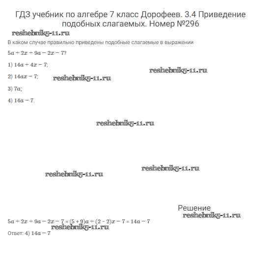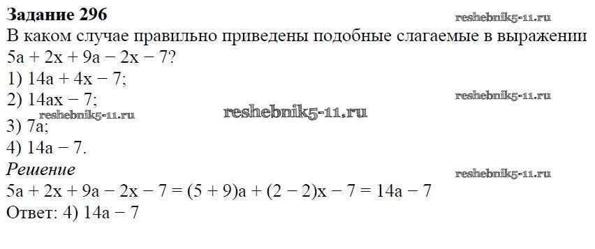 Готовая домашняя работа с ответами по Алгебре за 7 класс Дорофеев, Суворова, Бунимович Учебник Академический школьный учебник Просвещение 2020 ФГОС - Упражнения 296