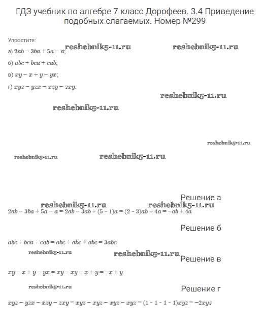 Готовая домашняя работа с ответами по Алгебре за 7 класс Дорофеев, Суворова, Бунимович Учебник Академический школьный учебник Просвещение 2020 ФГОС - Упражнения 299