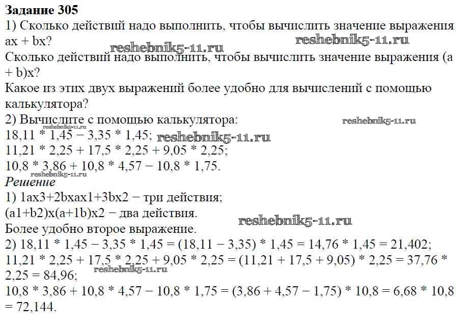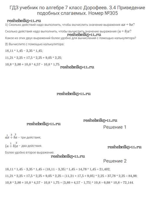Готовая домашняя работа с ответами по Алгебре за 7 класс Дорофеев, Суворова, Бунимович Учебник Академический школьный учебник Просвещение 2020 ФГОС - Упражнения 305