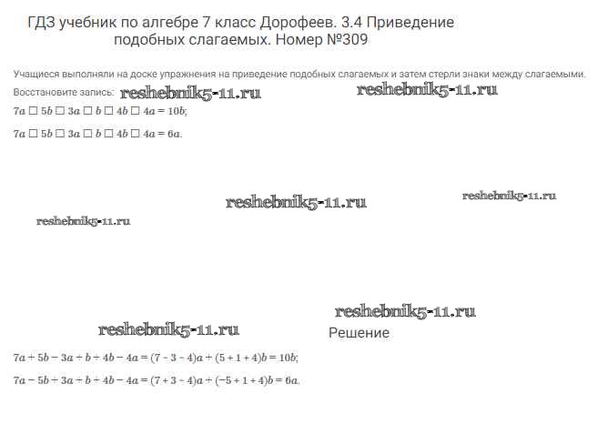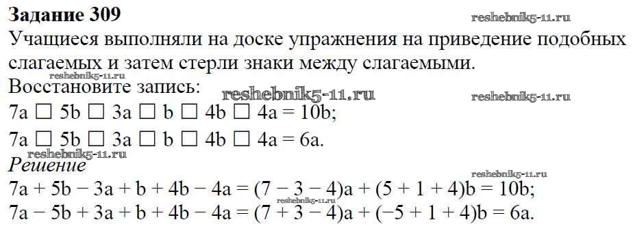 Готовая домашняя работа с ответами по Алгебре за 7 класс Дорофеев, Суворова, Бунимович Учебник Академический школьный учебник Просвещение 2020 ФГОС - Упражнения 309
