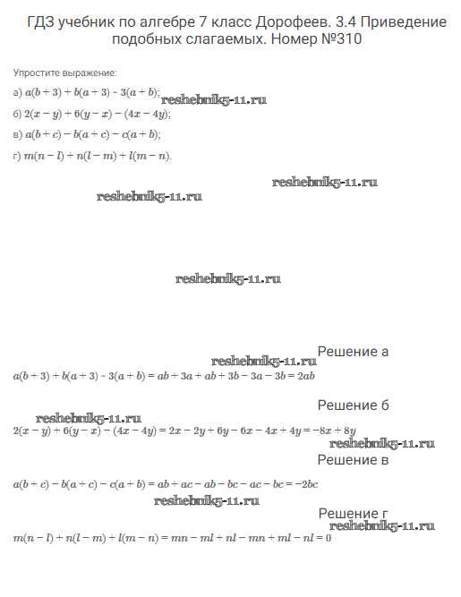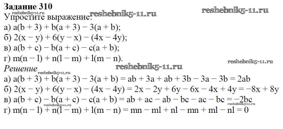 Готовая домашняя работа с ответами по Алгебре за 7 класс Дорофеев, Суворова, Бунимович Учебник Академический школьный учебник Просвещение 2020 ФГОС - Упражнения 310