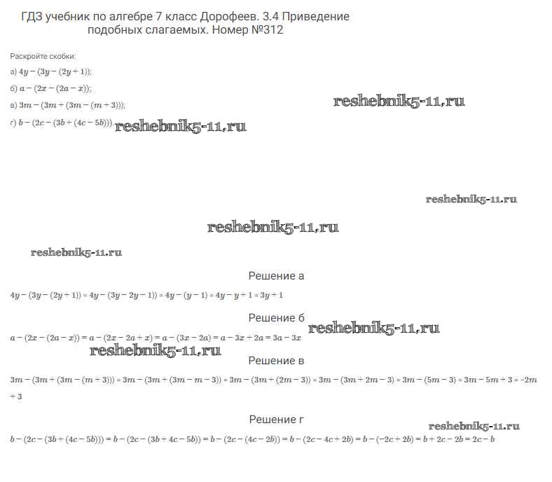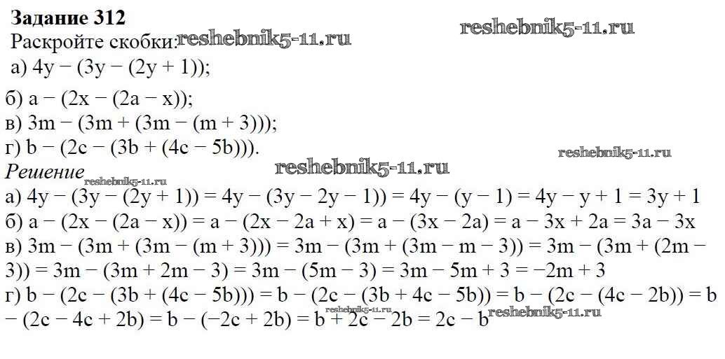 Готовая домашняя работа с ответами по Алгебре за 7 класс Дорофеев, Суворова, Бунимович Учебник Академический школьный учебник Просвещение 2020 ФГОС - Упражнения 312