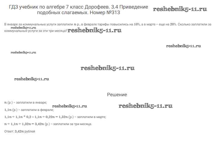Готовая домашняя работа с ответами по Алгебре за 7 класс Дорофеев, Суворова, Бунимович Учебник Академический школьный учебник Просвещение 2020 ФГОС - Упражнения 313