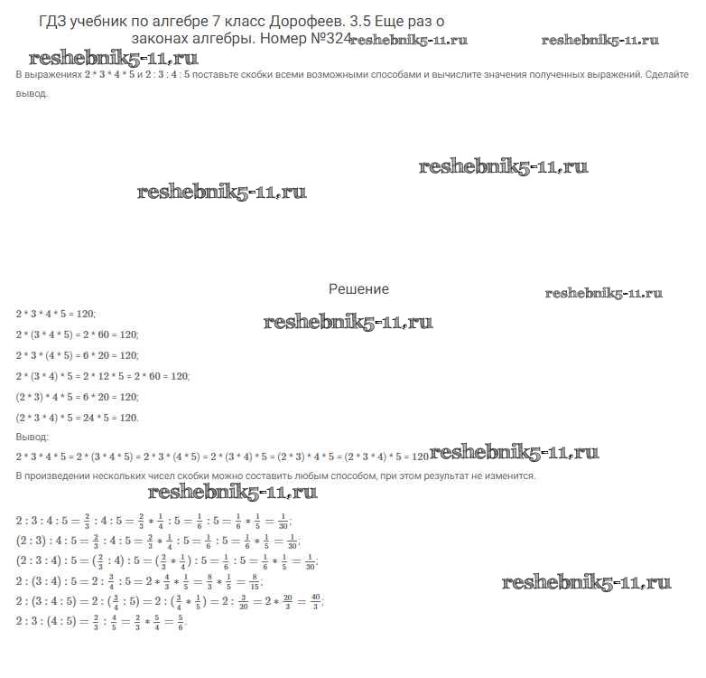 Готовая домашняя работа с ответами по Алгебре за 7 класс Дорофеев, Суворова, Бунимович Учебник Академический школьный учебник Просвещение 2020 ФГОС - Упражнения 324