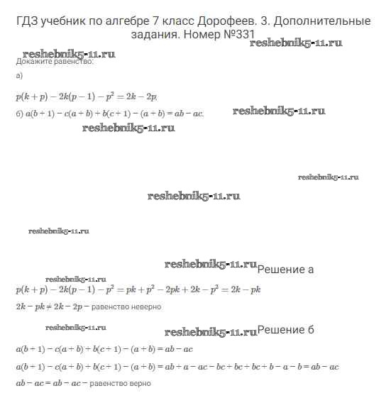 Готовая домашняя работа с ответами по Алгебре за 7 класс Дорофеев, Суворова, Бунимович Учебник Академический школьный учебник Просвещение 2020 ФГОС - Упражнения 331