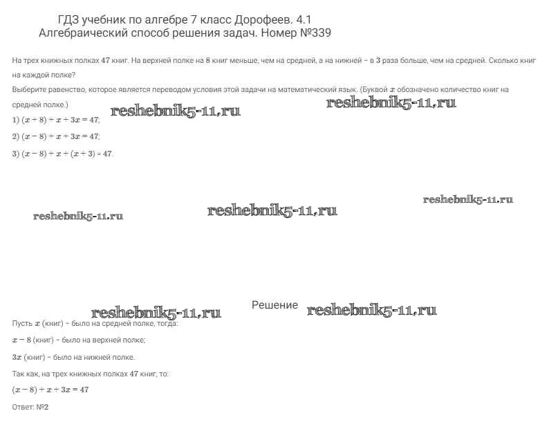 Готовая домашняя работа с ответами по Алгебре за 7 класс Дорофеев, Суворова, Бунимович Учебник Академический школьный учебник Просвещение 2020 ФГОС - Упражнения 339