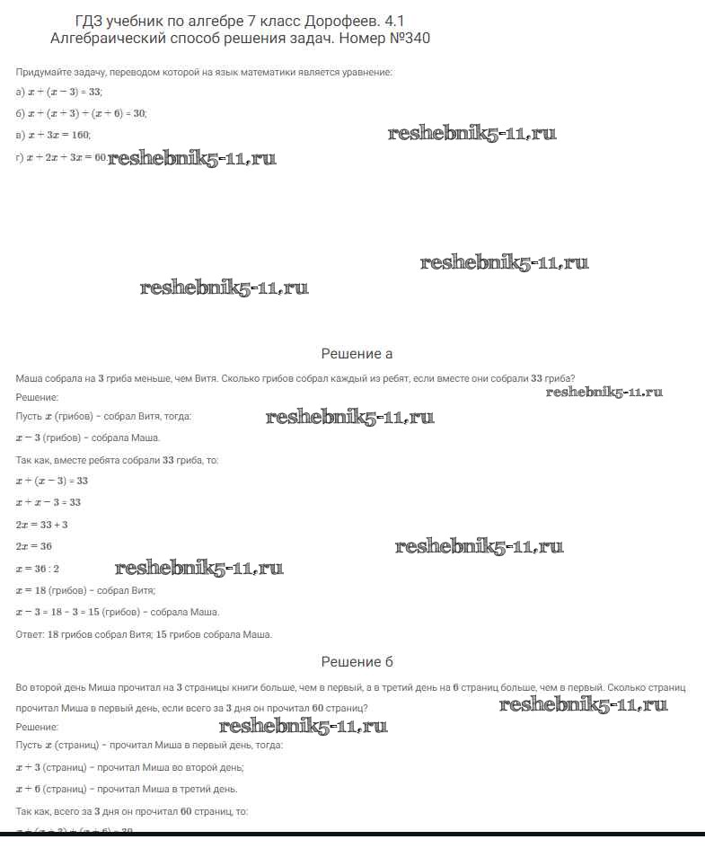 Готовая домашняя работа с ответами по Алгебре за 7 класс Дорофеев, Суворова, Бунимович Учебник Академический школьный учебник Просвещение 2020 ФГОС - Упражнения 340