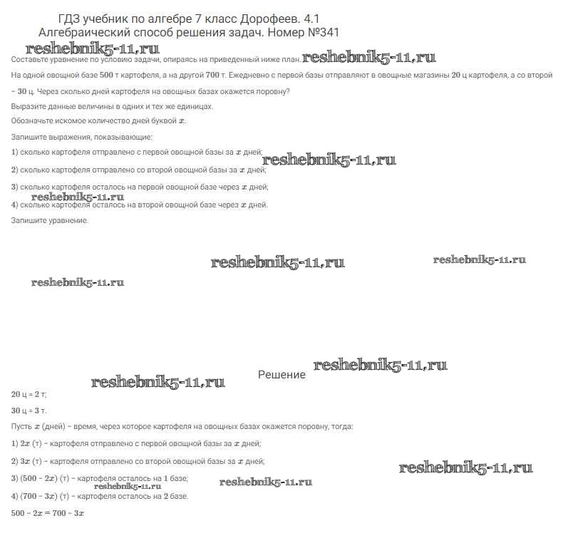 Готовая домашняя работа с ответами по Алгебре за 7 класс Дорофеев, Суворова, Бунимович Учебник Академический школьный учебник Просвещение 2020 ФГОС - Упражнения 341
